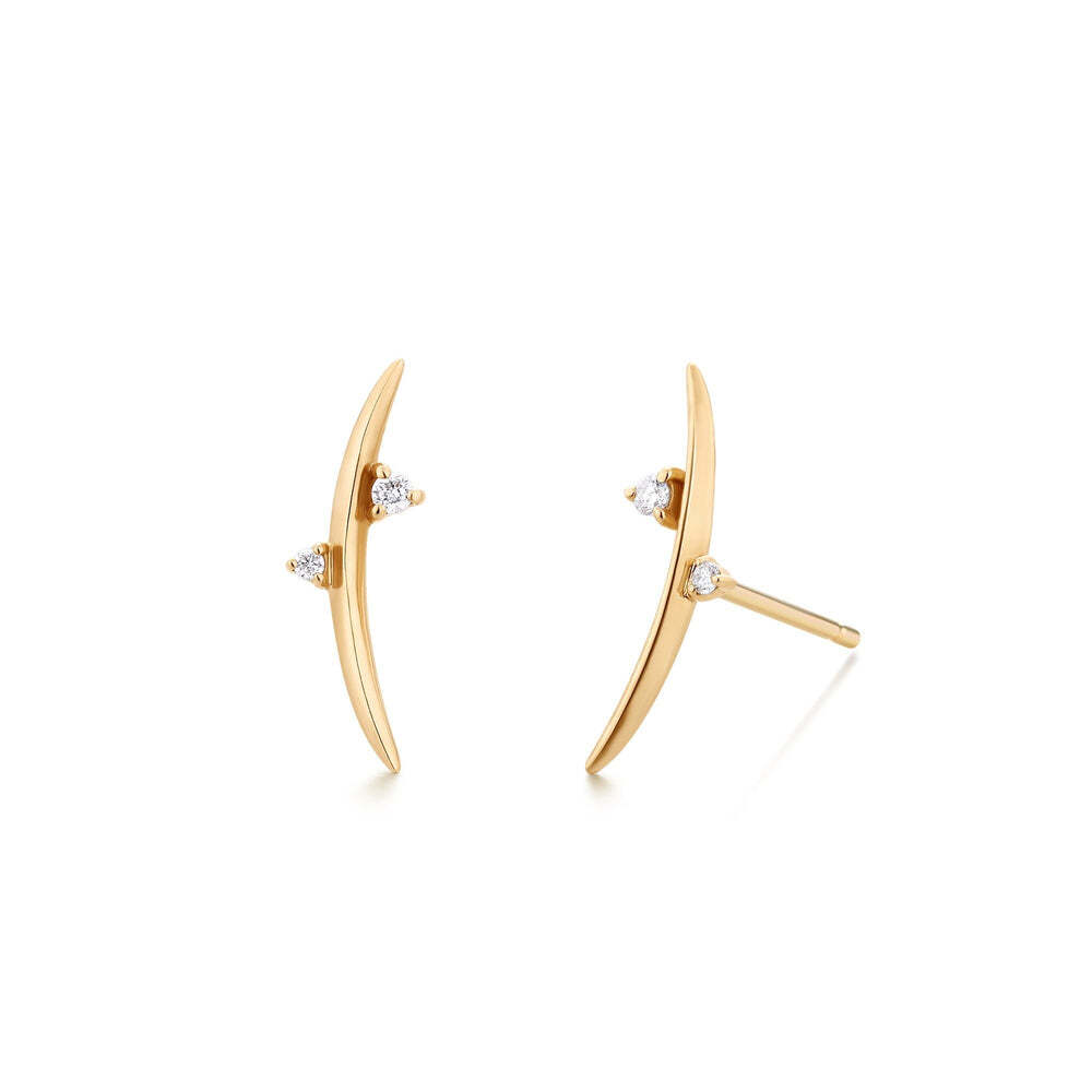 The Dora Diamond Arc Earrings feature a unique curved shape studded with asymmetrical diamonds. Wear these unique beauties, but be ready for all the compliments they will attract. Product Details: Material: 14K Solid Gold Size:14x1.3mm Stone Type: Diamond Total Carat Weight:0.037carat Sold as a pair
