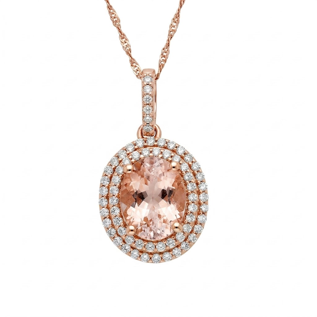 14k Rose Gold 1.66ct Morganite and .36ct Diamond Necklace
