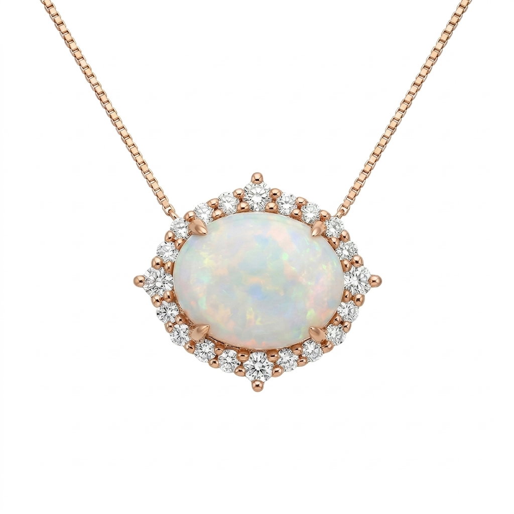 - 14k Rose Gold 1.54ct Ethiopian Opal with .30ct Diamond Necklace