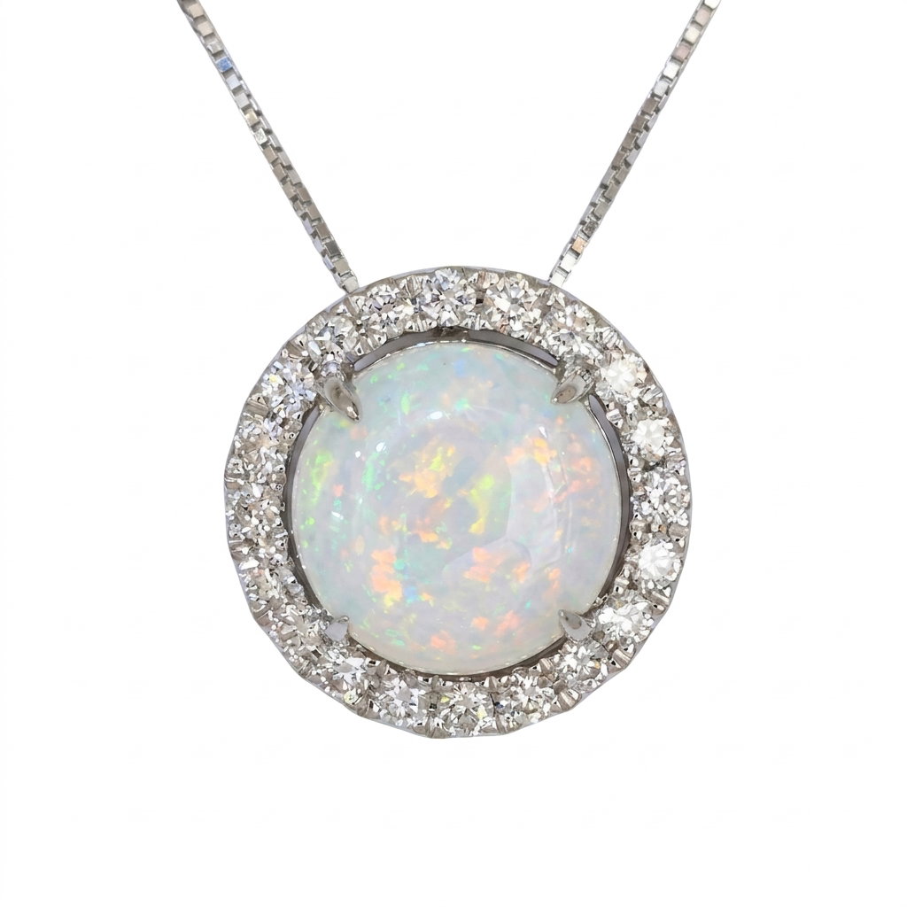 - 14k White Gold 1.46ct Ethiopian Opal and .31ct Diamond Necklace