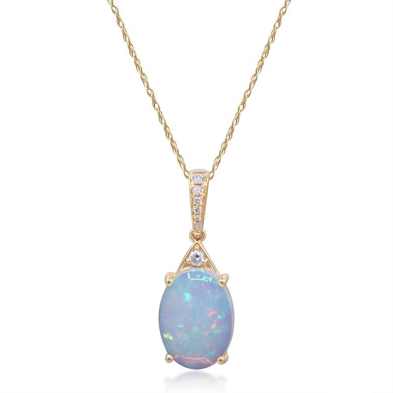 - 14k Yellow Gold 4.45ct Ethiopian Opal and .09ct Diamond Necklace
