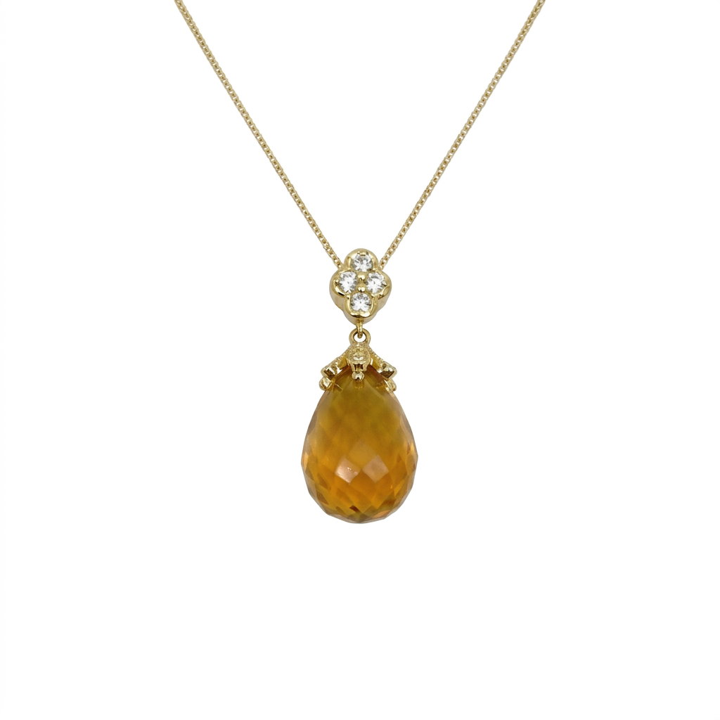 14k Yellow Gold 6.82ct Briolette Citrine and .17ct Diamond Pendant