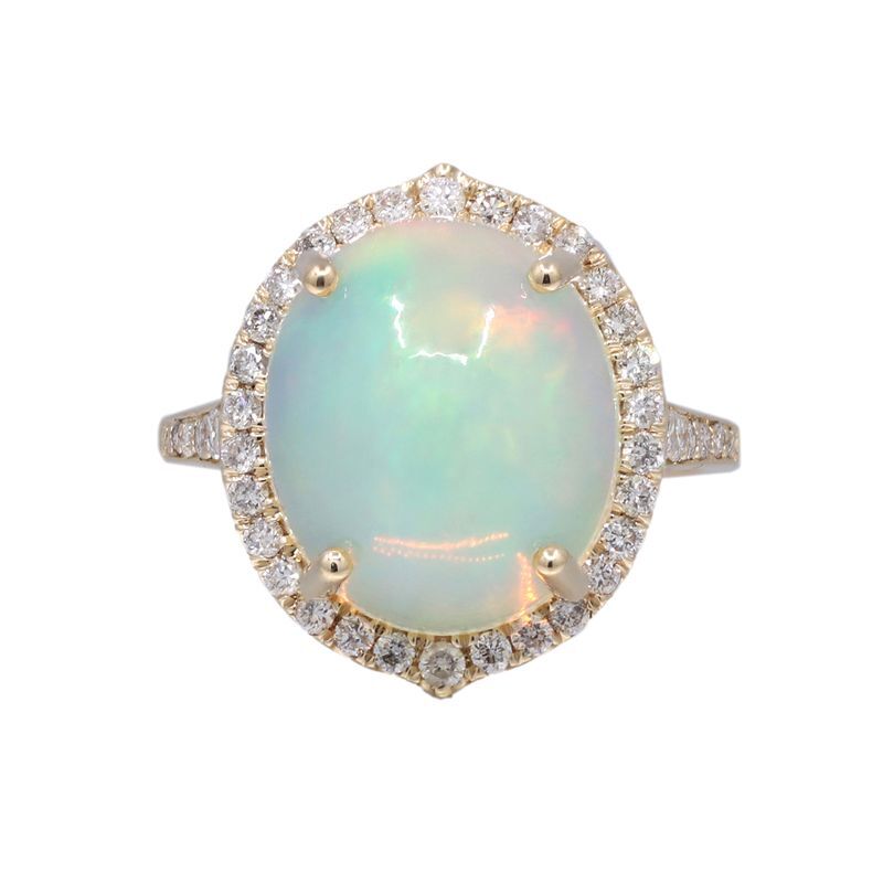 - 14k Yellow Gold 5.44ct Ethiopian Opal with .52ct Diamond Ring