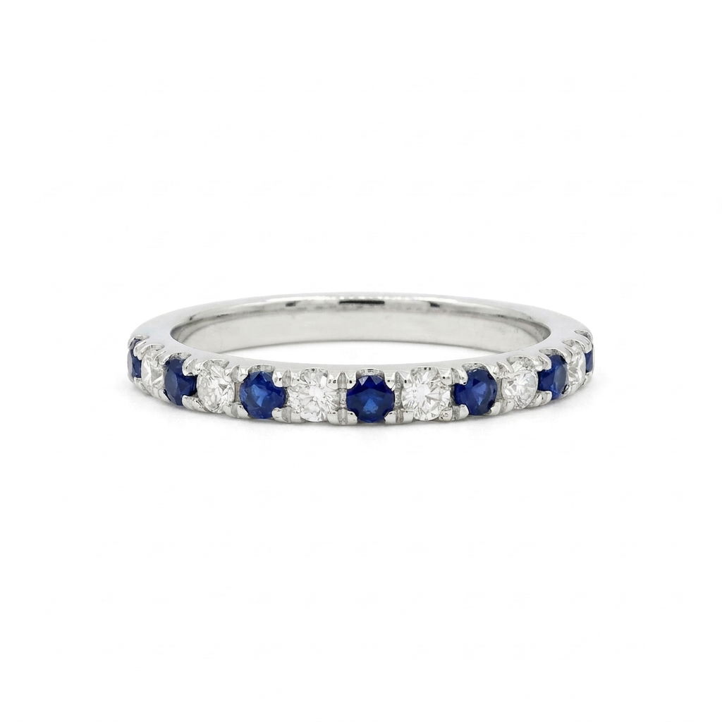 14k White Gold .15ct Diamond with .23ct Sapphire Band