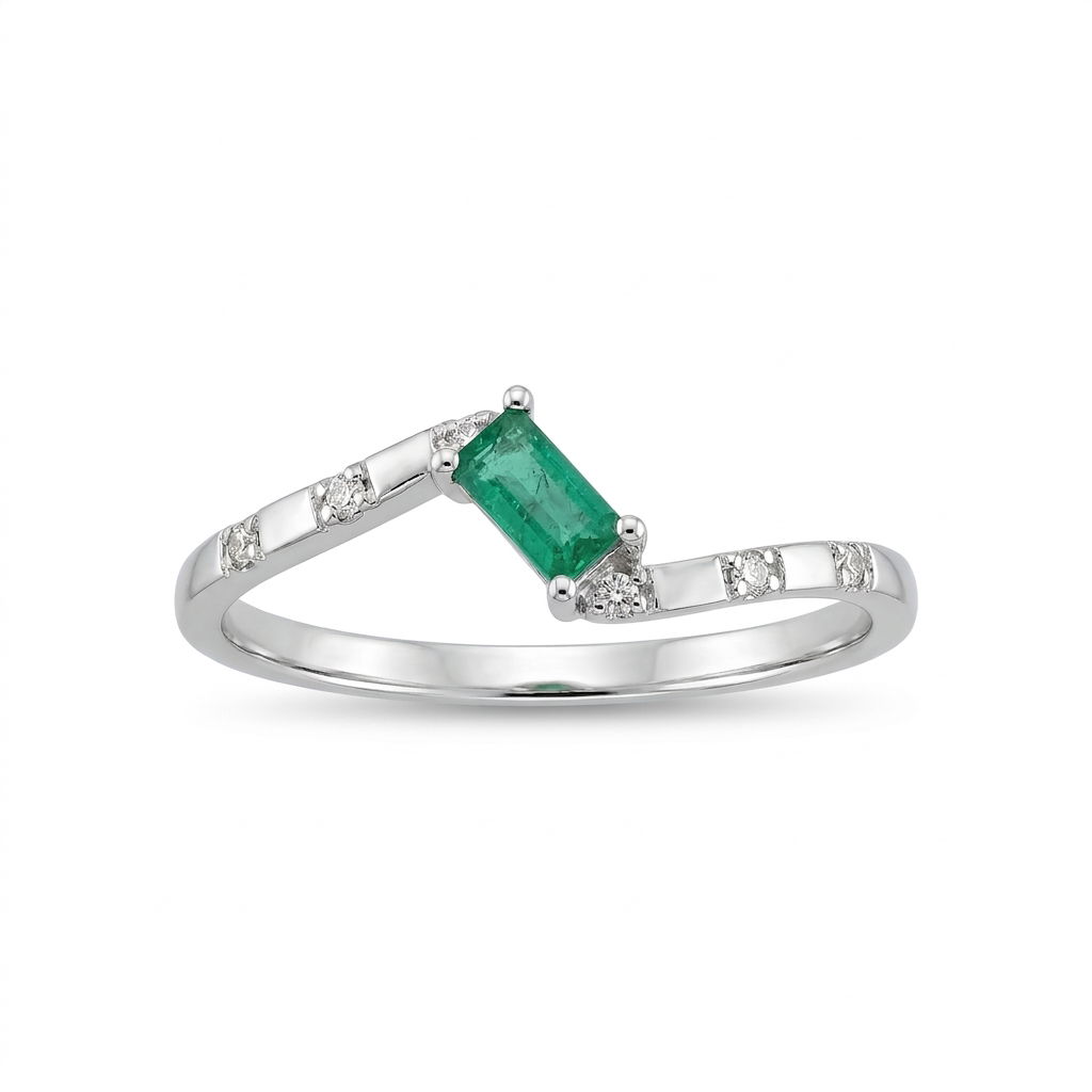 Emerald and diamond ring, 2 baguette 0.16ct, emerald 0.60ct, 14kw
