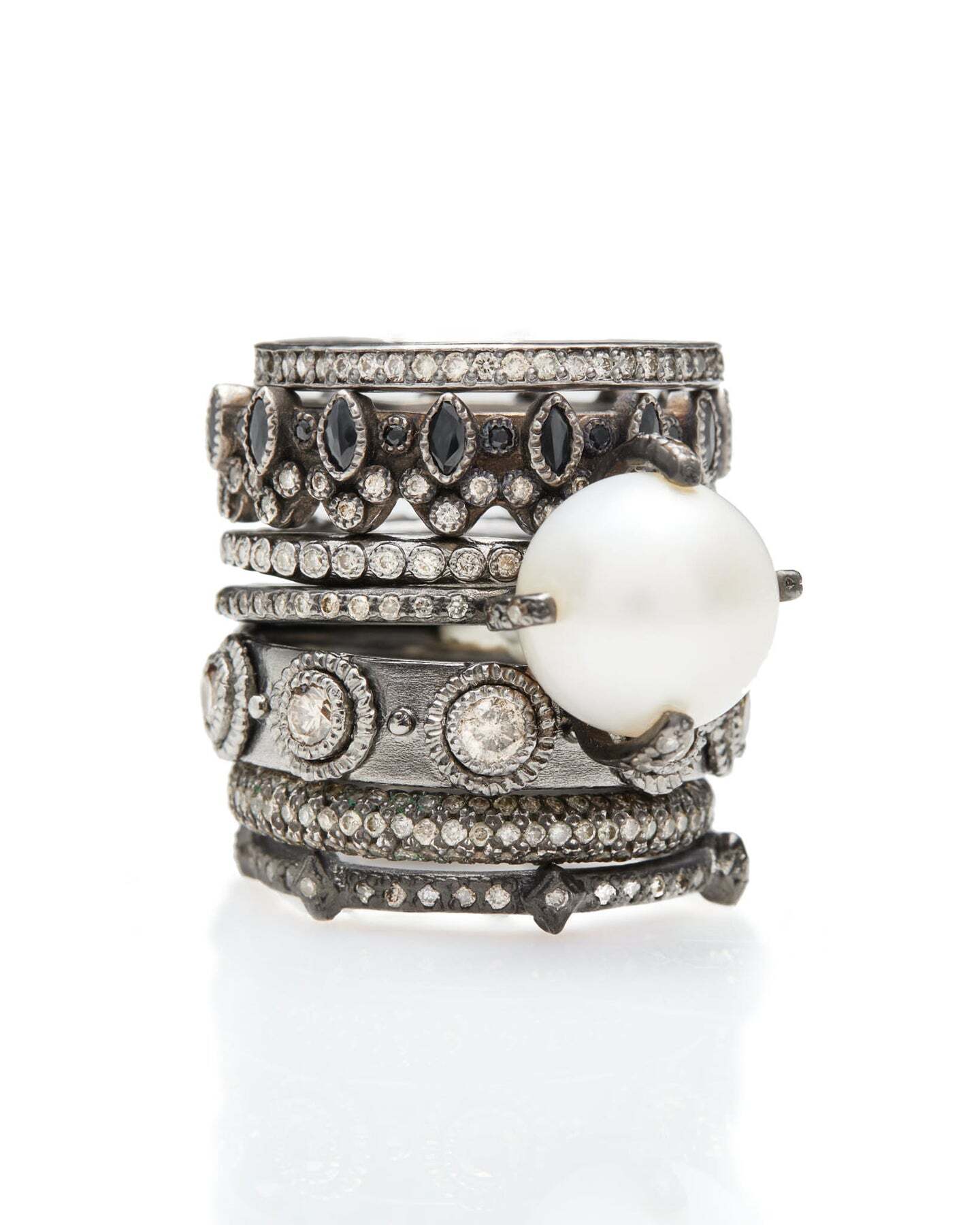 This Blackened Sterling Silver Pave Champagne Diamond Stack Band Ring is the ultimate statement piece. Boasting 0.78 TCW of sparkling champagne diamonds, the bold design creates an eye-catching stack band effect. Crafted from sterling silver, the ring is finished with a blackened finish that adds an extra touch of on-trend style. Perfect for special occasions or everyday glamour, this stack band ring is sure to be a conversation starter and an absolute must-have in your jewelry collection.