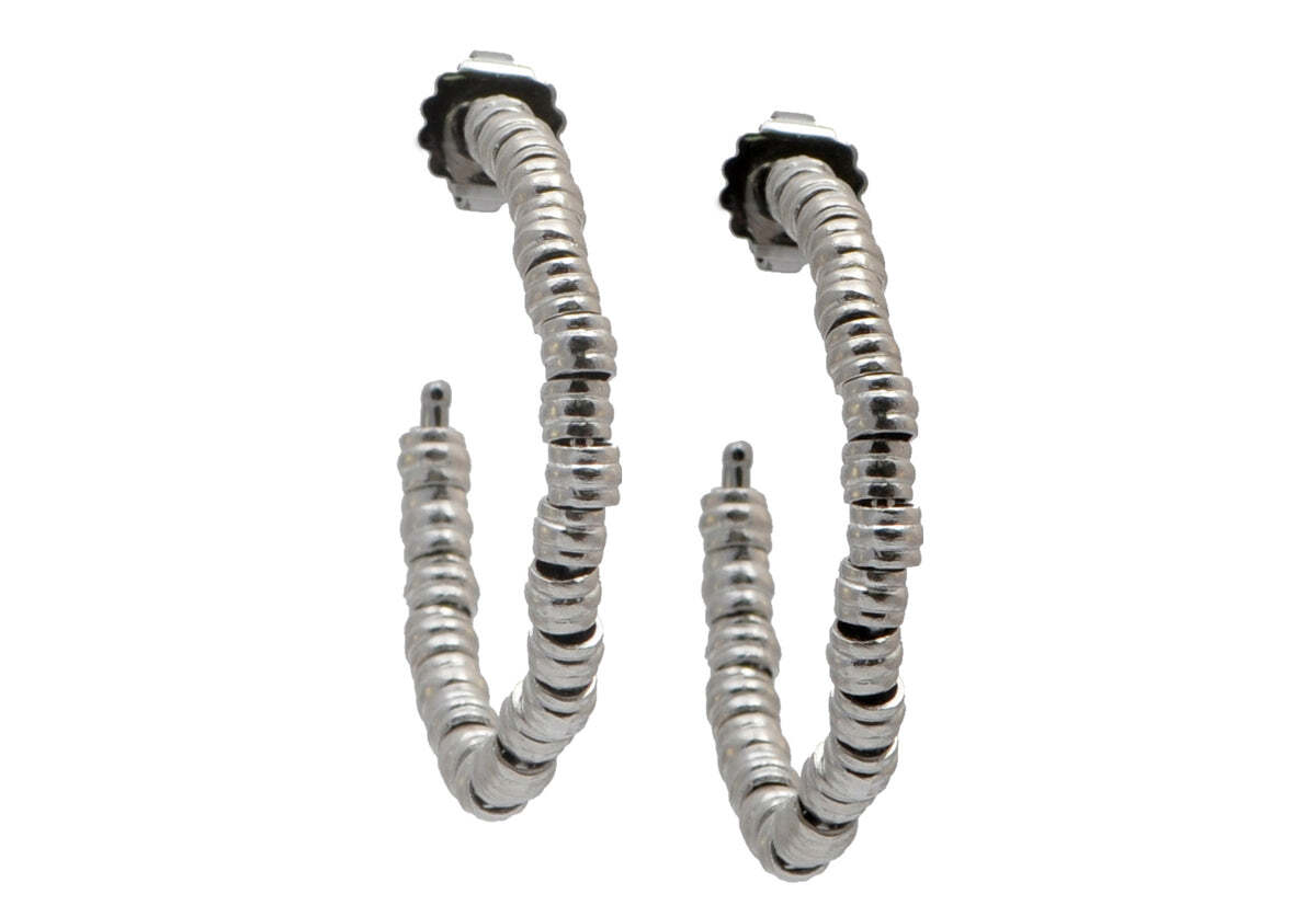 These unique Sterling Silver 35MM Side Hoop Earrings with Organic Pebble Beads are perfect for making a bold statement. Handcrafted from sterling silver, each of these earrings features a 35MM hoop and are adorned with four organic pebble beads. The pebble beads add a touch of nature to your look and the silver finish ensures their lasting beauty. These earrings are lightweight and comfortable, making them a go-to for everyday wear. They’re great for adding a touch of style to any look and make a beautiful addition to any jewelry collection.