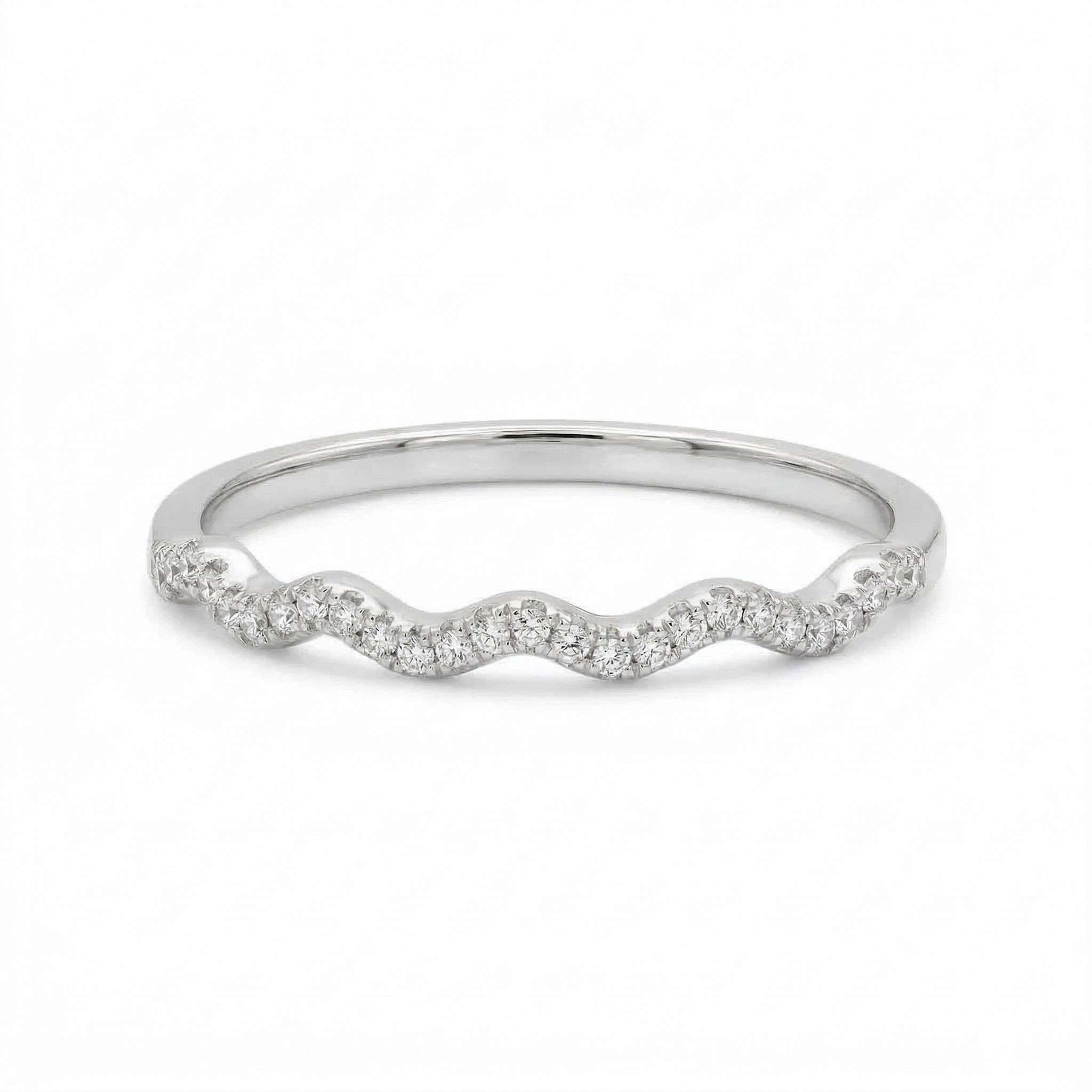 - 14K White Gold Ring Wide with Mountain Across Bottom Pave Sky Twisted Rails Diamond 0.25 Ctw
