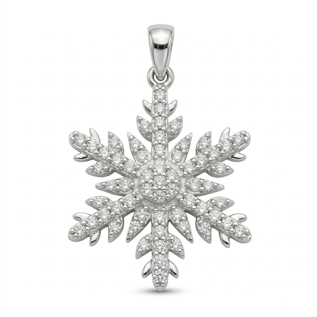 14k White Snowflake Pendant with .47ct Diamond