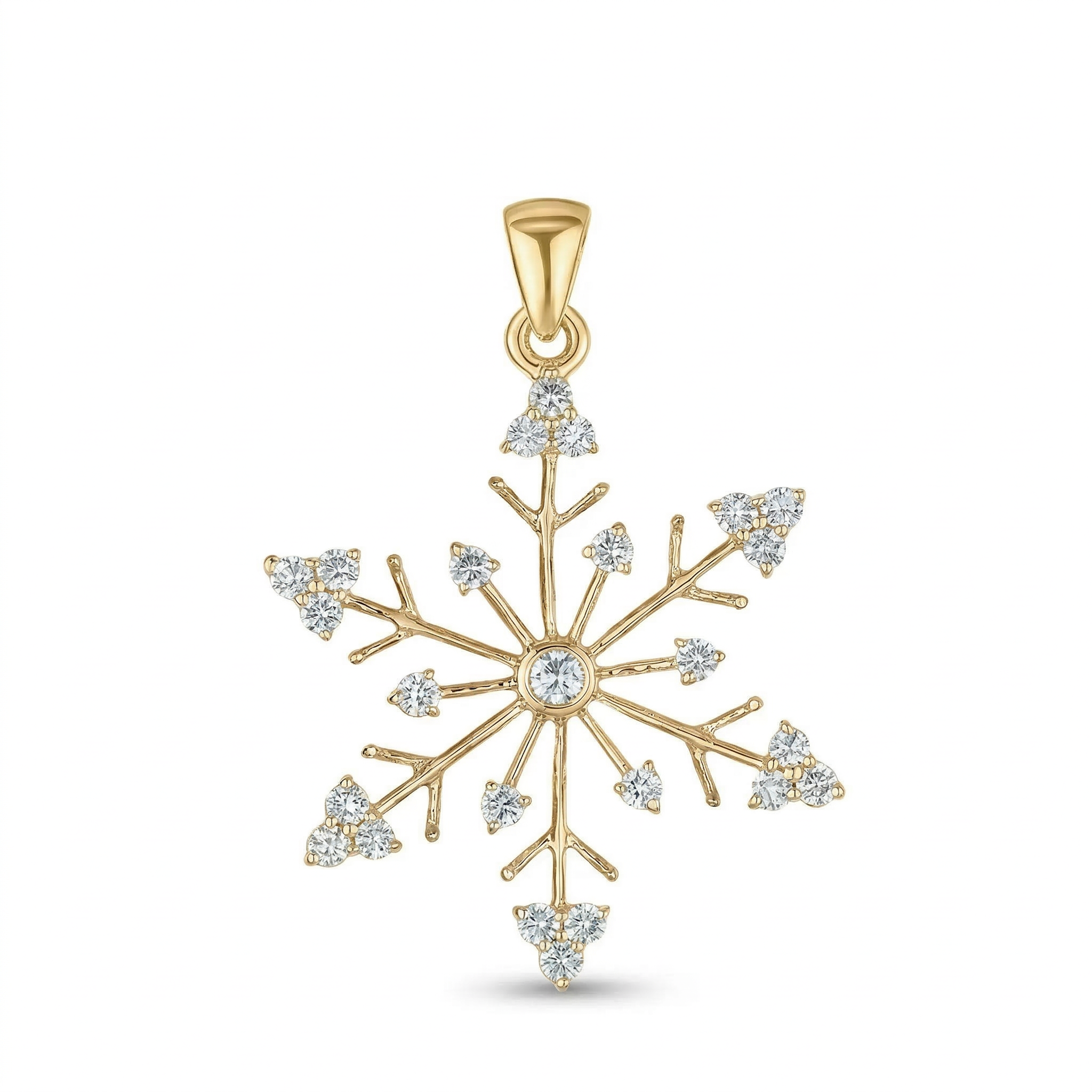 - 14k Yellow Gold Snowflake with Arrow Shaped Ends Pendant Diamond 0.25 Ctw