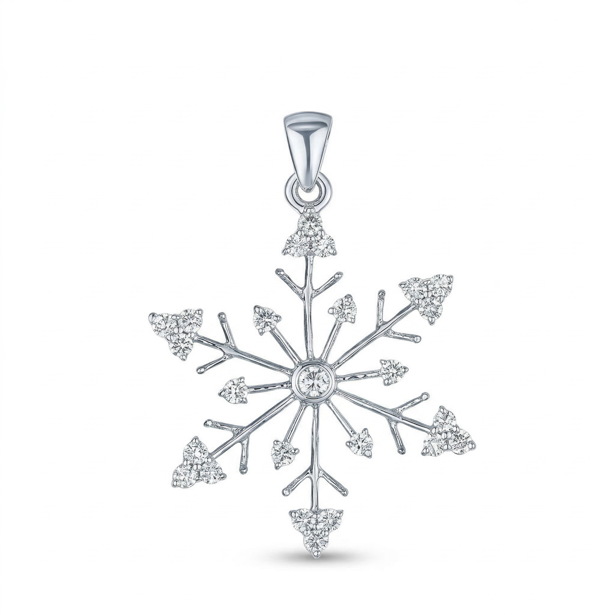 - 14kw White Gold Snowflake with Arrow Shaped Ends Pendant Diamond 0.25 Ctw