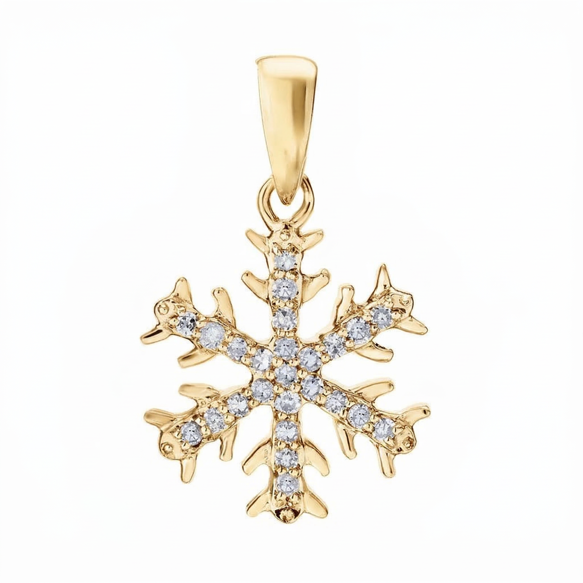 - 10k Yellow Gold Snowflake with Polished Bail Pendant Diamond 0.05 Ctw