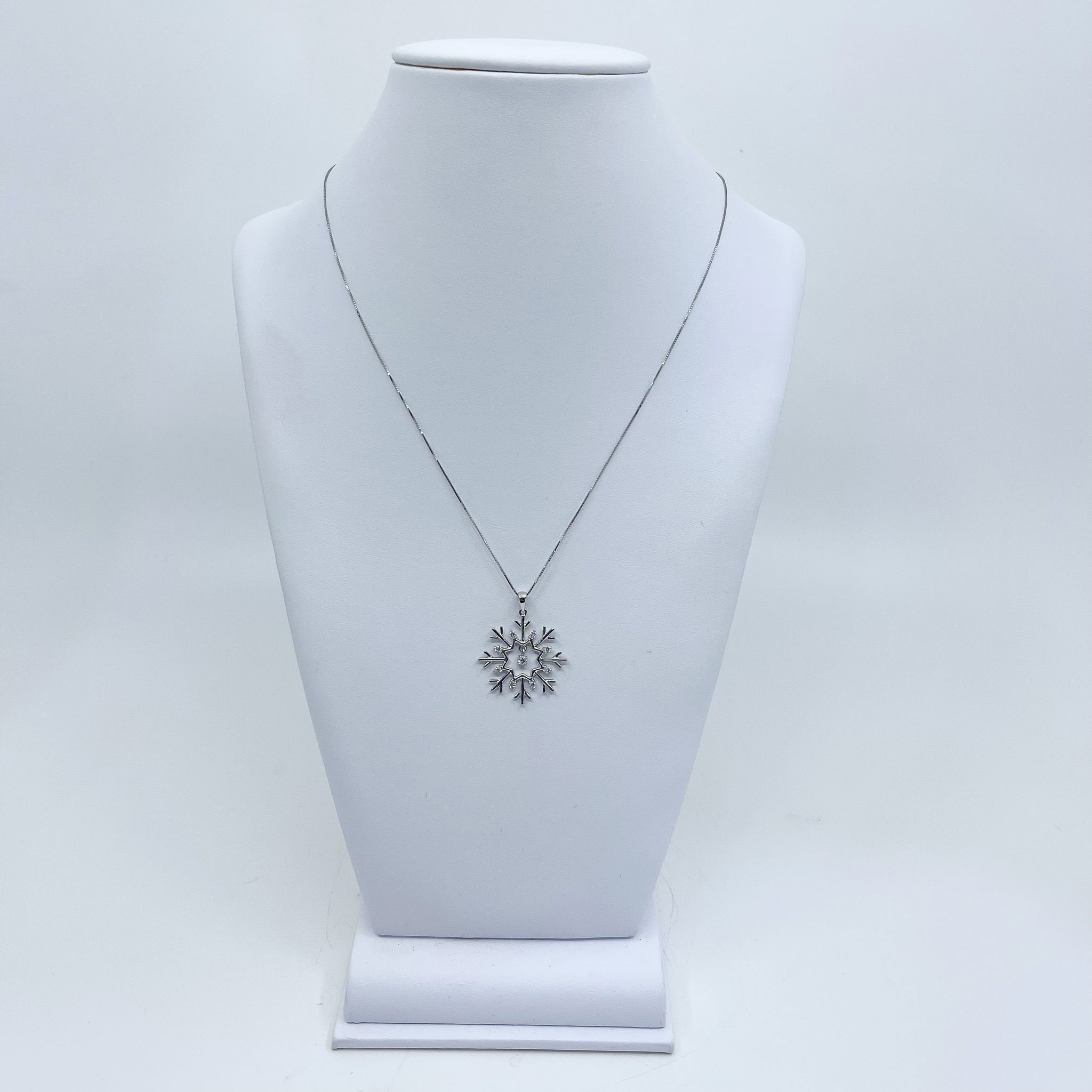 - 14k White Gold Diamond Set Snowflake with Dangling Diamond Center Pendant Diamond 0.25 Ctw