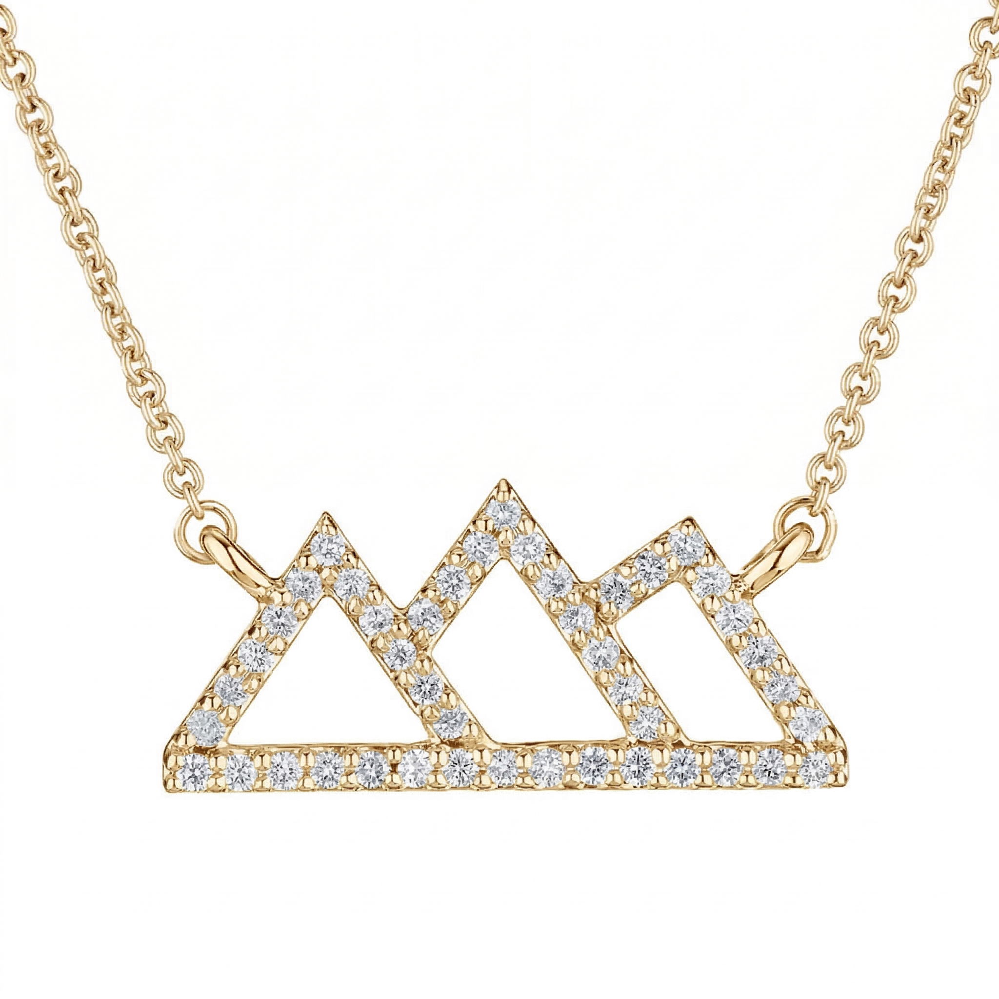 - 14K Yellow Gold Necklace 3 Peak Pave Set Cutout Mountains Diamond 0.25 Ctw