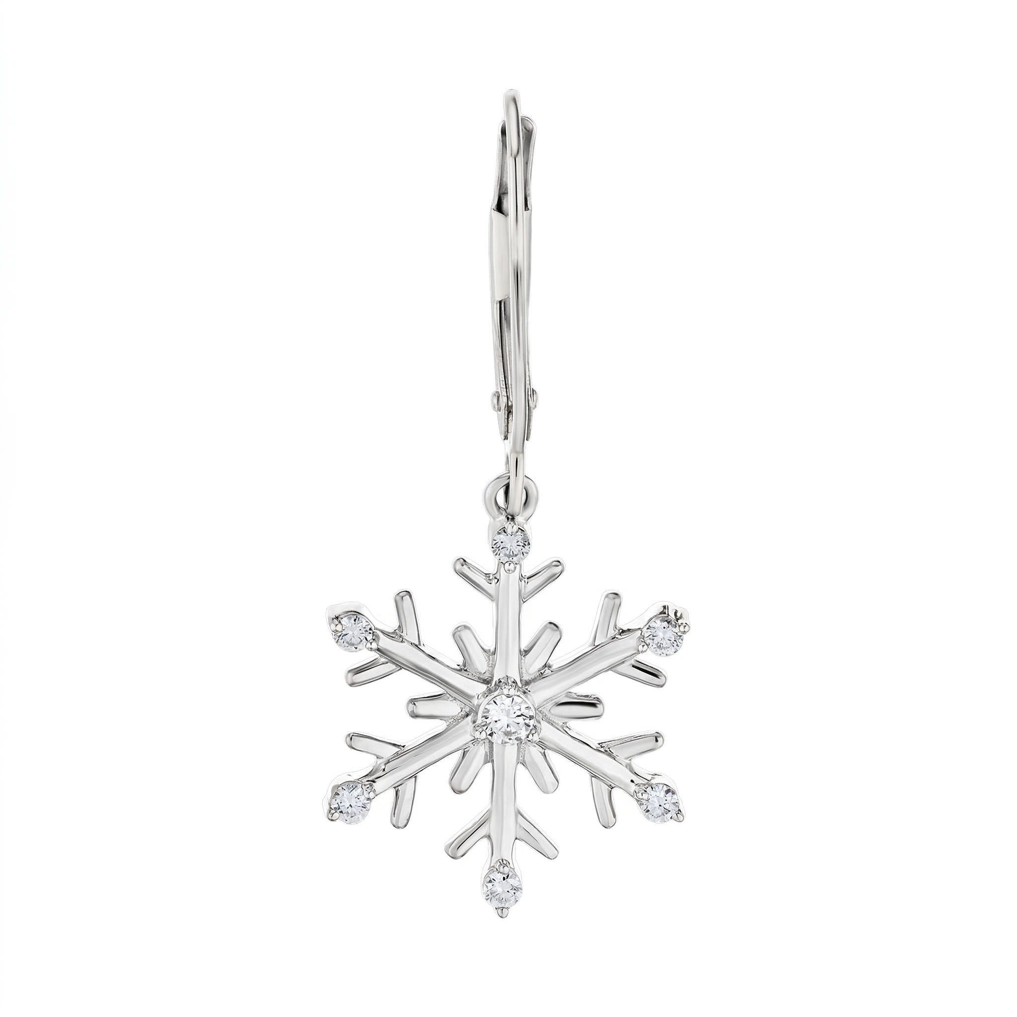 - 14kw White Gold Snowflake Drops on Lever-Backs Earrings Diamond 0.20 Ctw