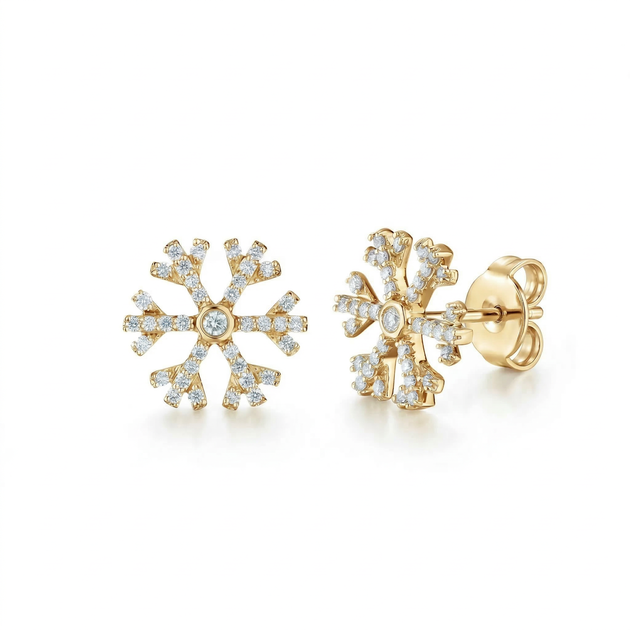 - 14k Yellow Gold Pave Snowflake with Bezel Set Center Studs Earrings Diamond 0.25 Ctw