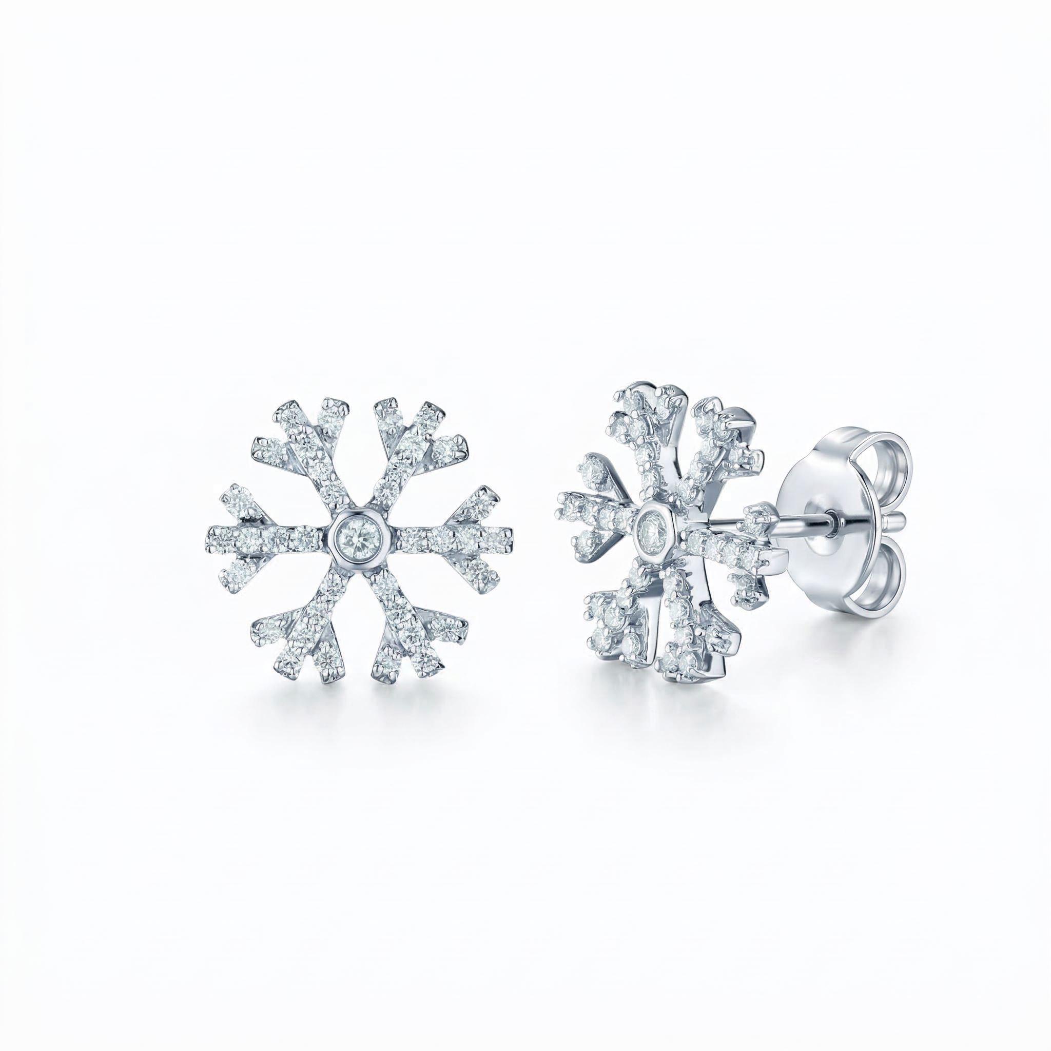 - 14k White Gold Pave Snowflake with Bezel Set Center Studs Earrings Diamond 0.25 Ctw