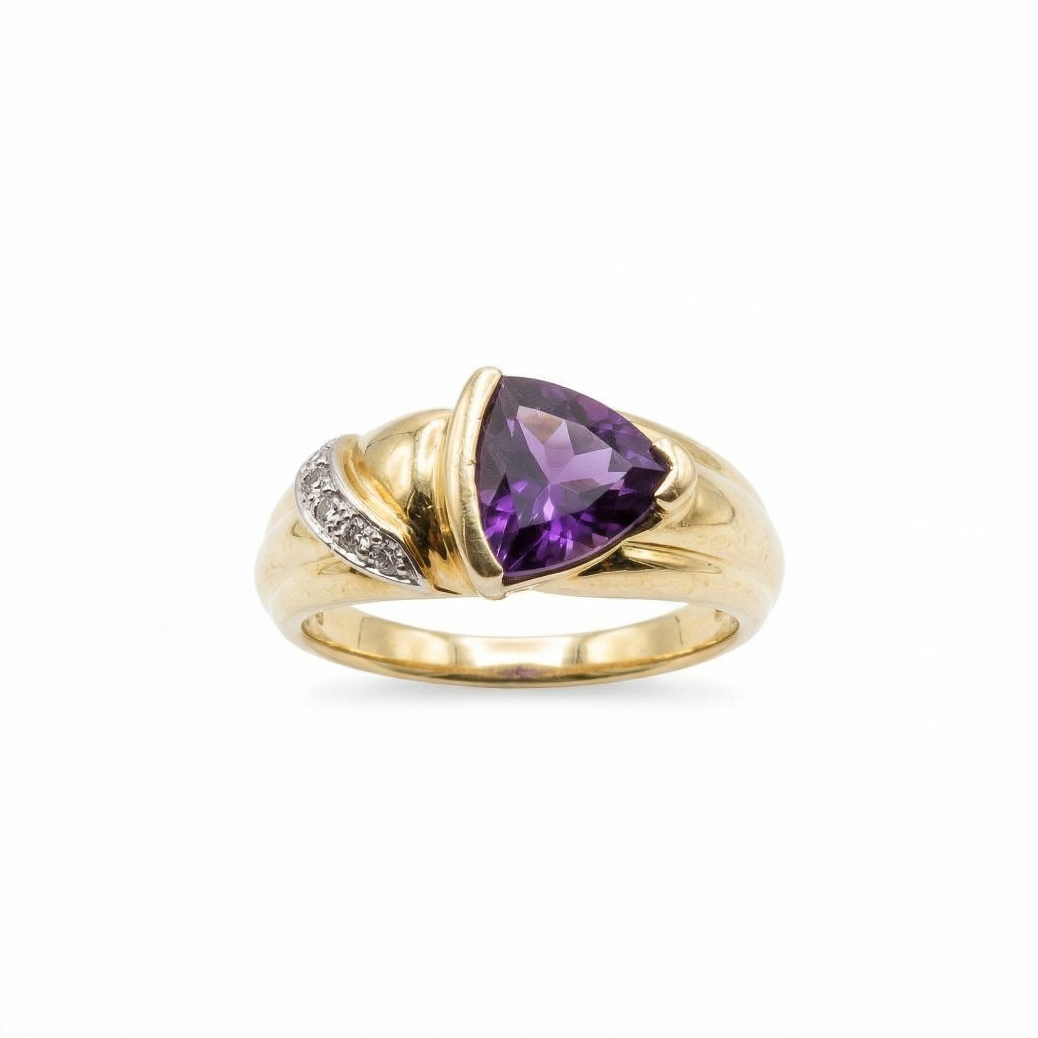 18k Yellow Gold Amethyst and Diamond Ring