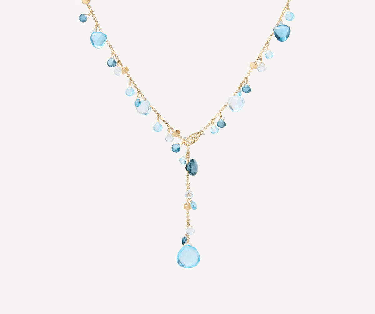 18K Yellow Gold Mixed Topaz Lariat Necklace