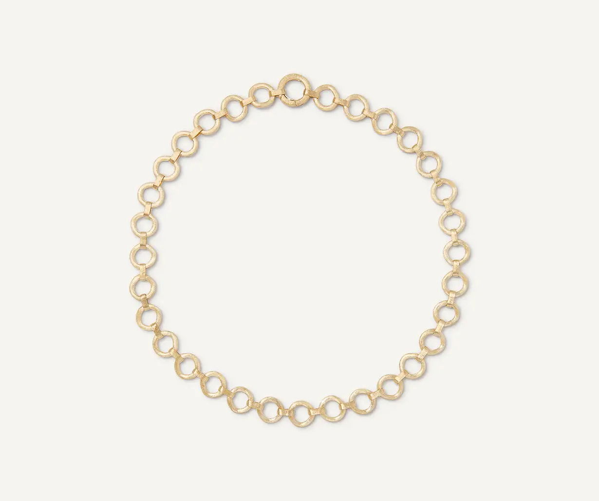 This 18K yellow gold link collar necklace is finely engraved by hand with an ancient Florentine technique. It is ideal styled with the different stackable pendants of the Jaipur collection.