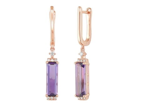 14K Rose Gold Elongated Elegance North South Set 2.54ct Amethyst with .10ct Diamond Accent Dangle Earrings | Breckenridge Jewelers