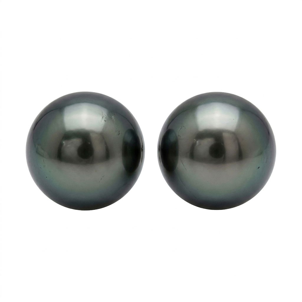14k White Gold 10mm Tahitian Pearl Studs | Breckenridge Jewelers