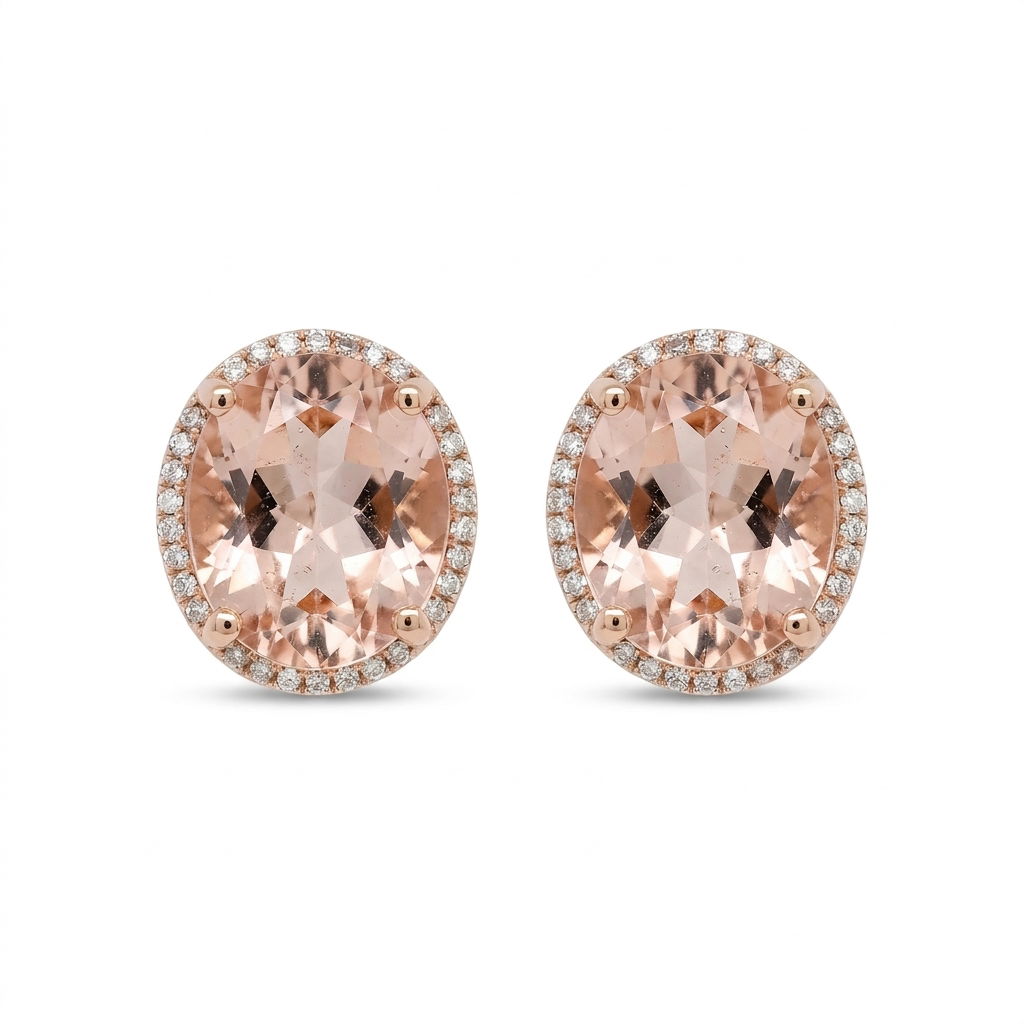 - 14k Rose Gold Morganite with Diamond Halo Studs