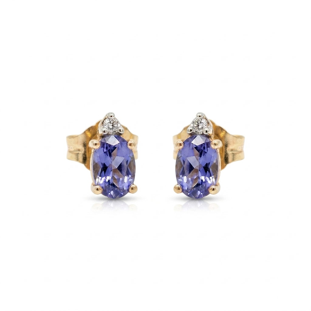14k Yellow Gold .50ct Tazanite and .02ct Diamond Earrings