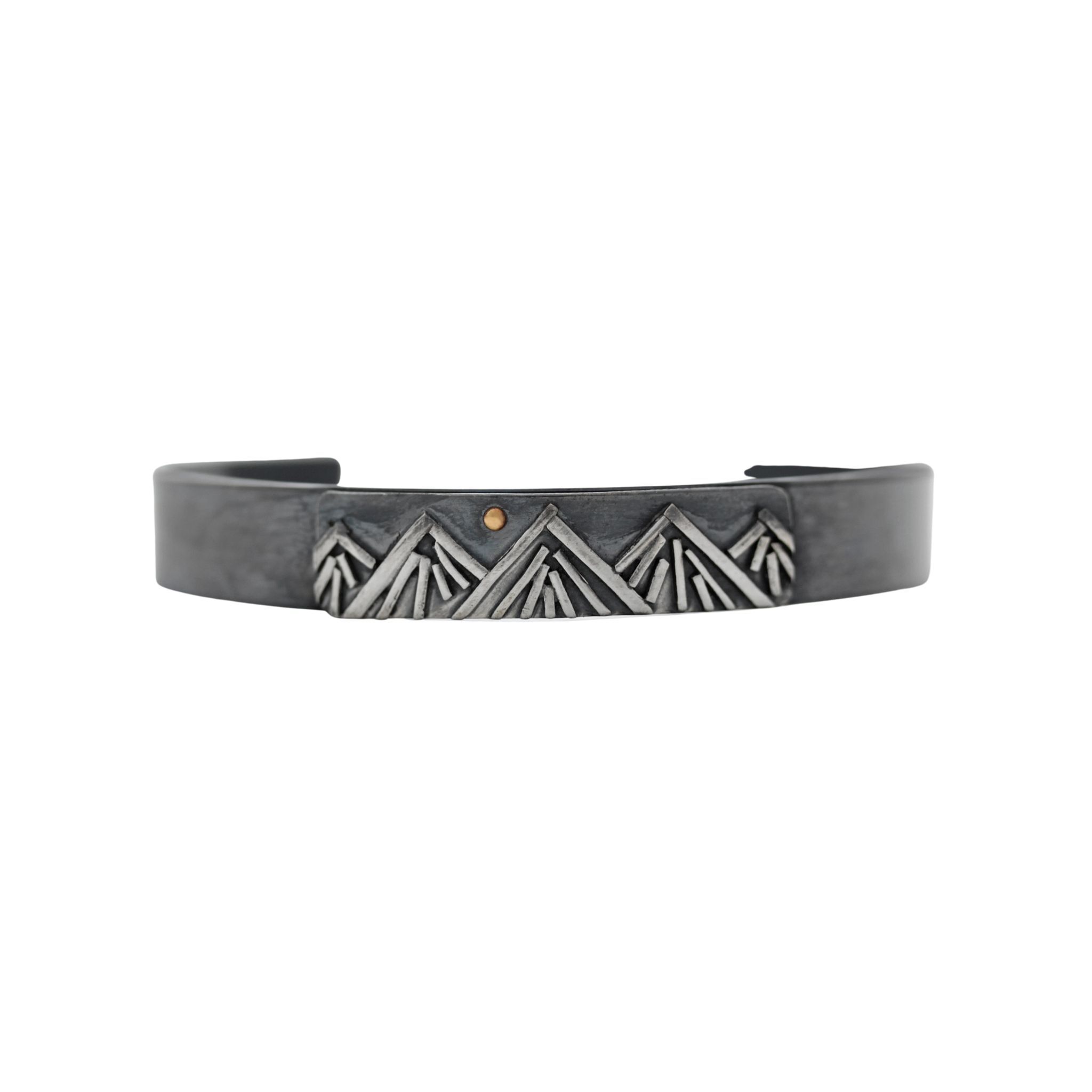 4. Bright Moon Mountain Winter Sterling Silver Oxizided and 22K 1/4” Cuff Bracelet