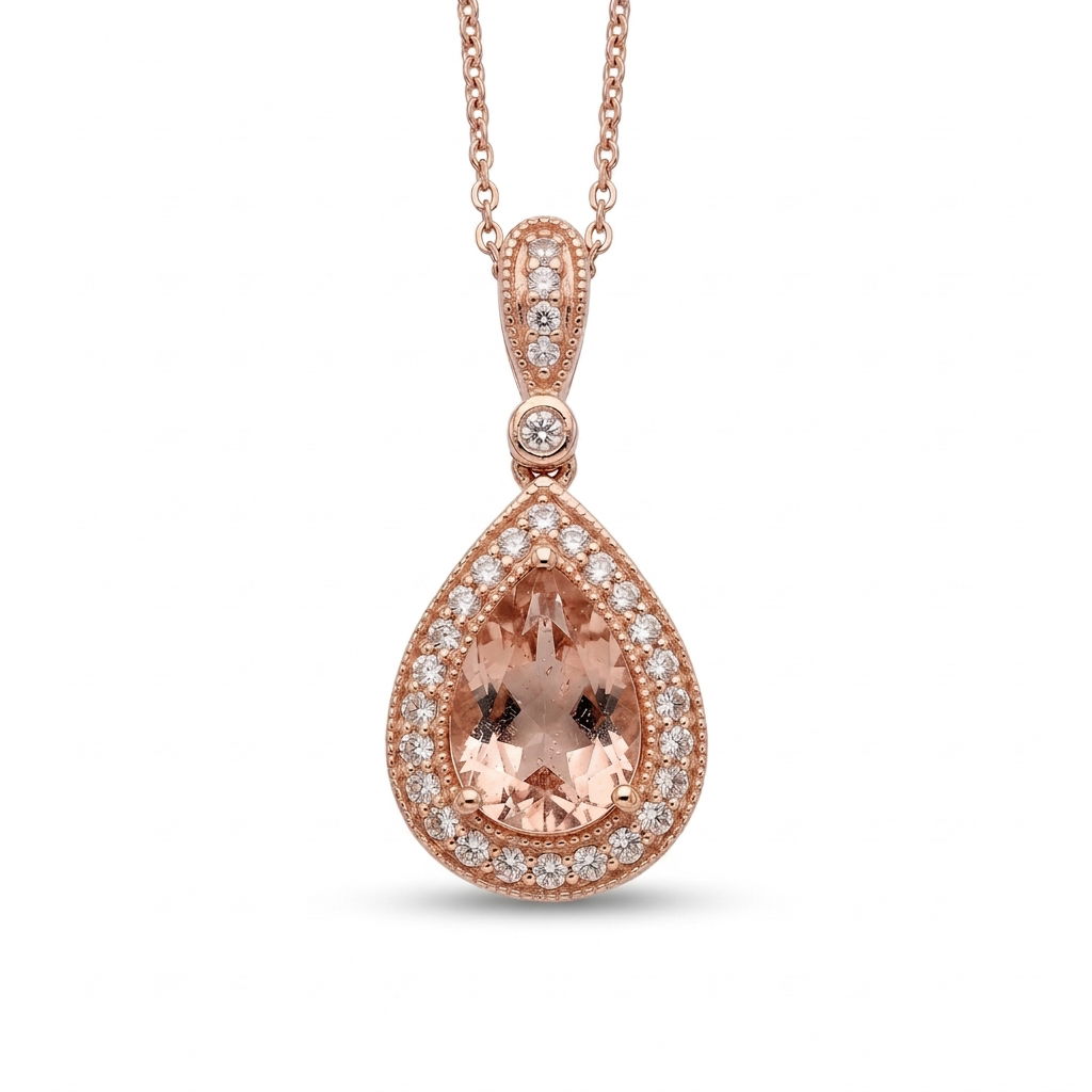 14k Rose Gold Diamond and Morganite Necklace