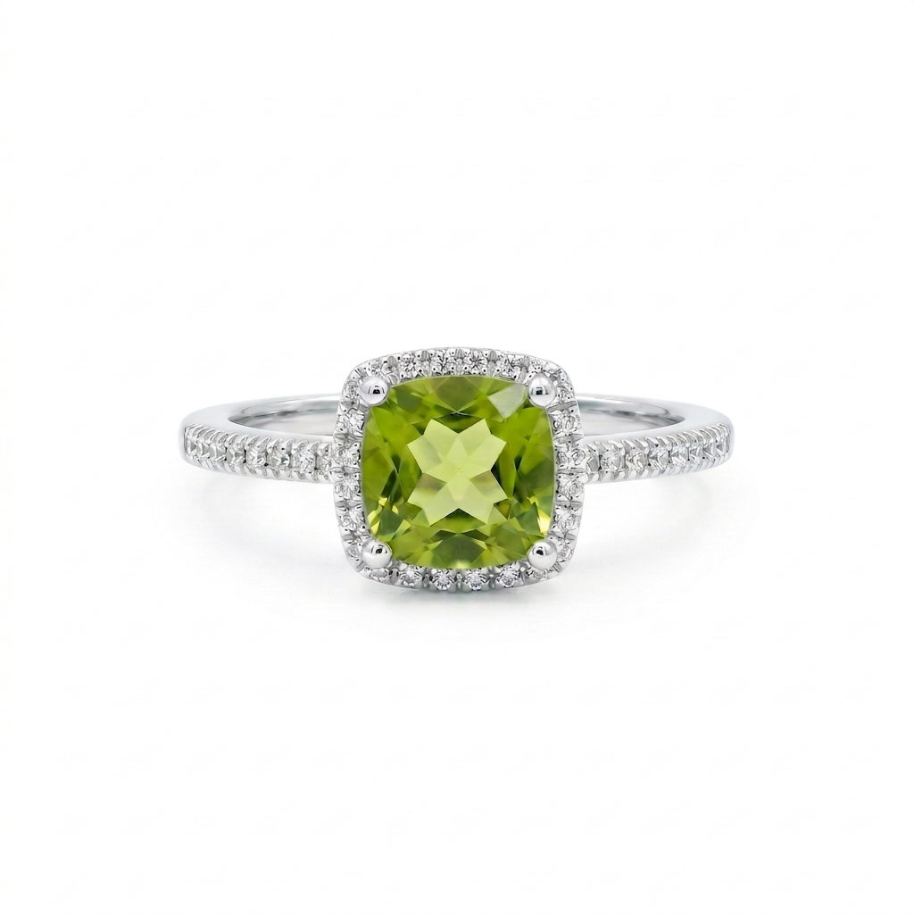14k White Gold .13ct Diamond and 1.55ct Peridot ring