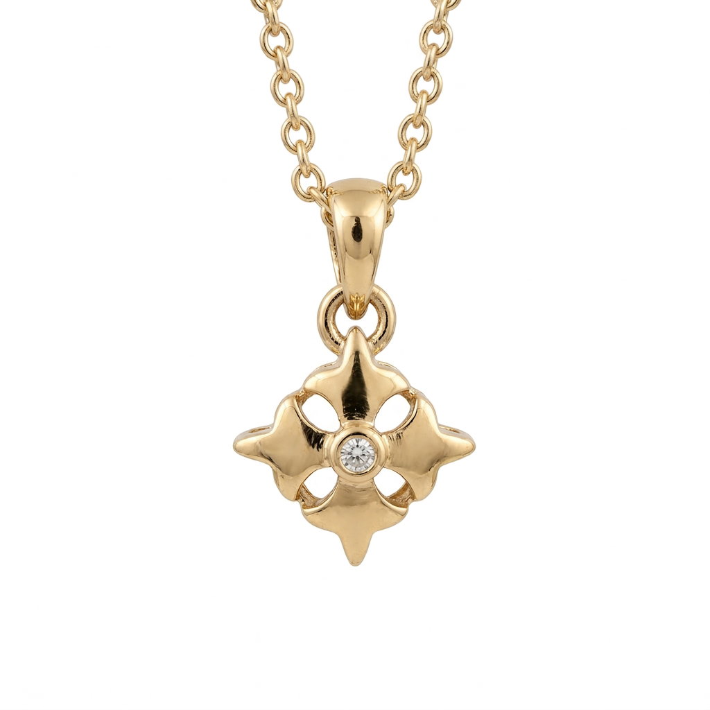 14K Diamond Three Cross Logo Pendant on Adjustable Cable Chain