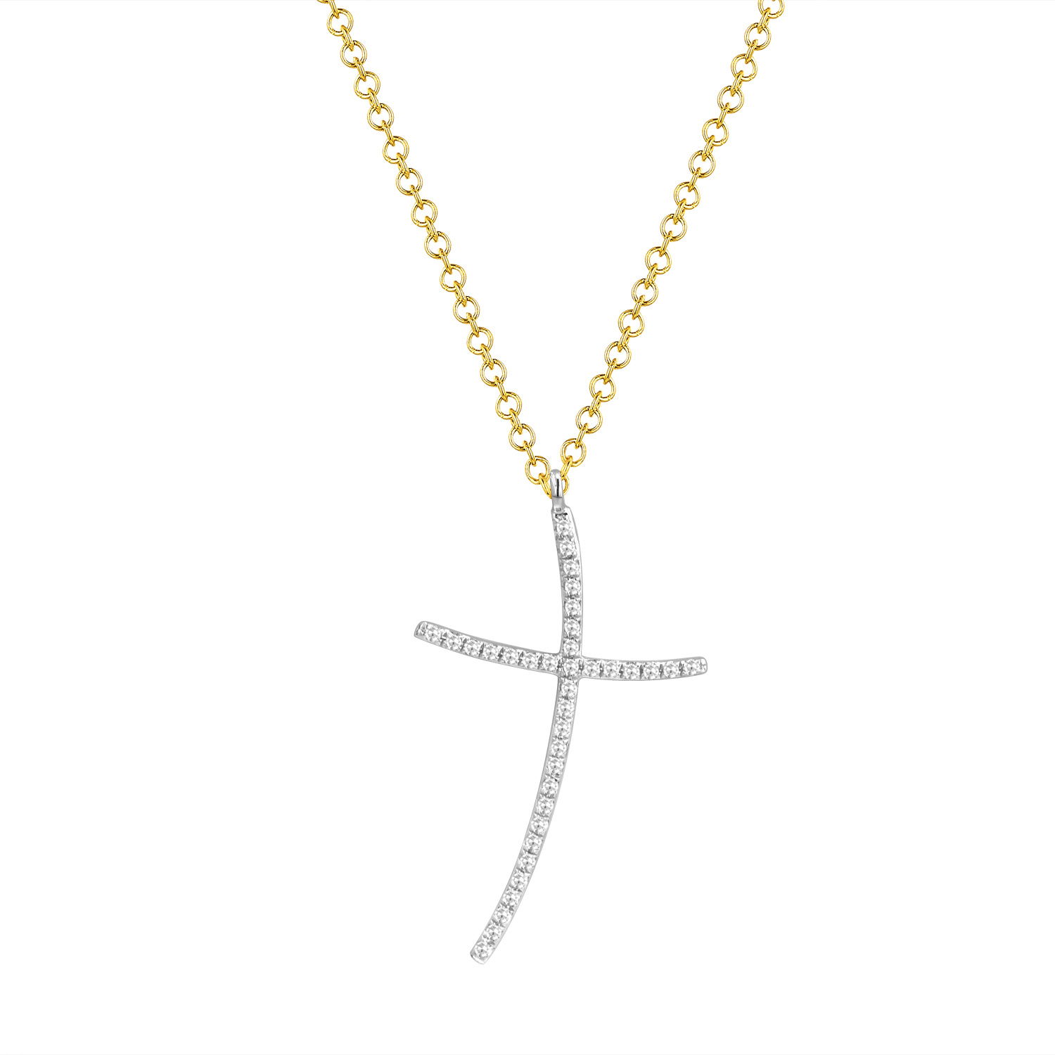 Venetti Diamond YG/WG cross Necklace