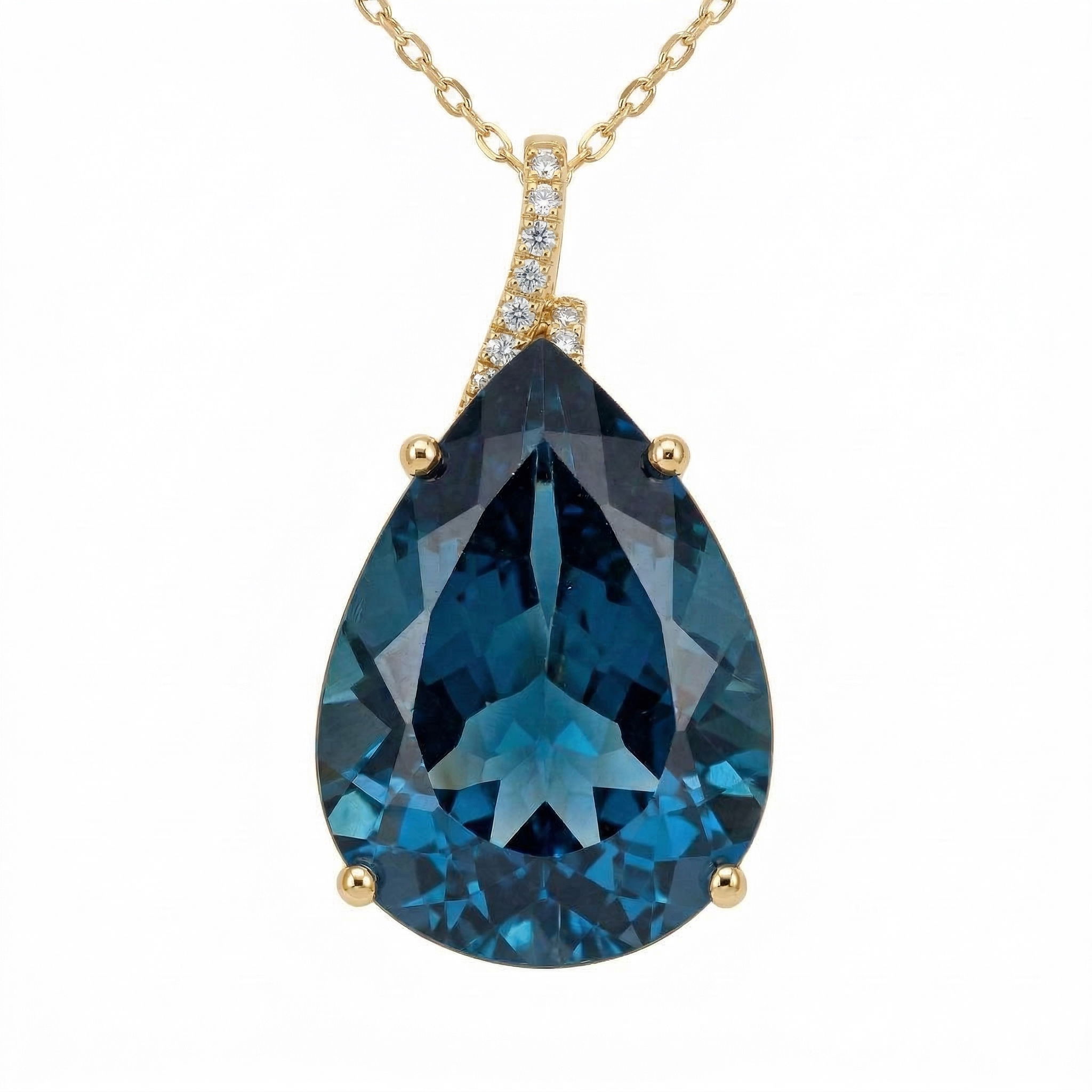 14k Yellow Gold London Blue Topaz with Diamond Necklace