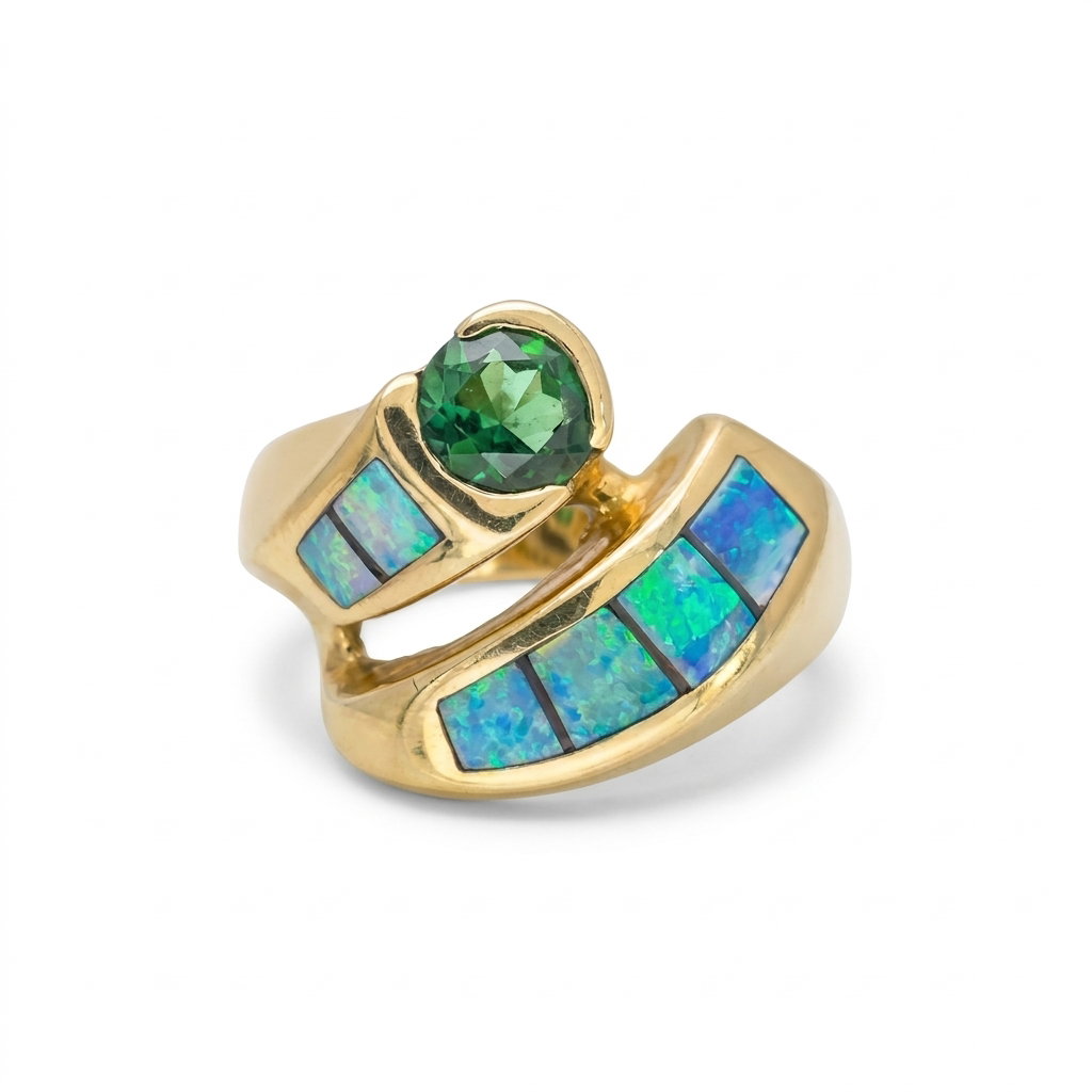 14ky Opalite Inlay Ring with Zultanite