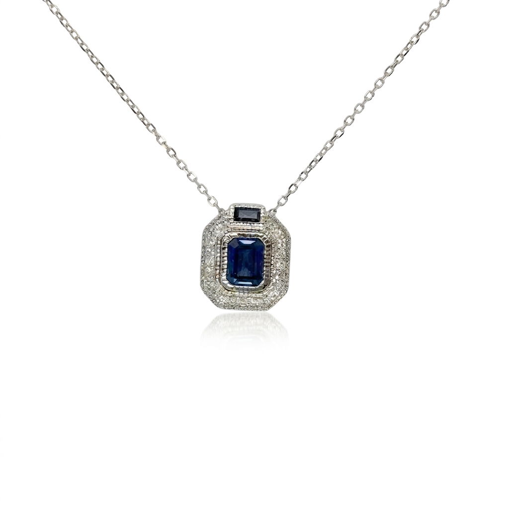 14k White Gold .71ct Sapphire and .09ct Diamond Pendant | Breckenridge Jewelers