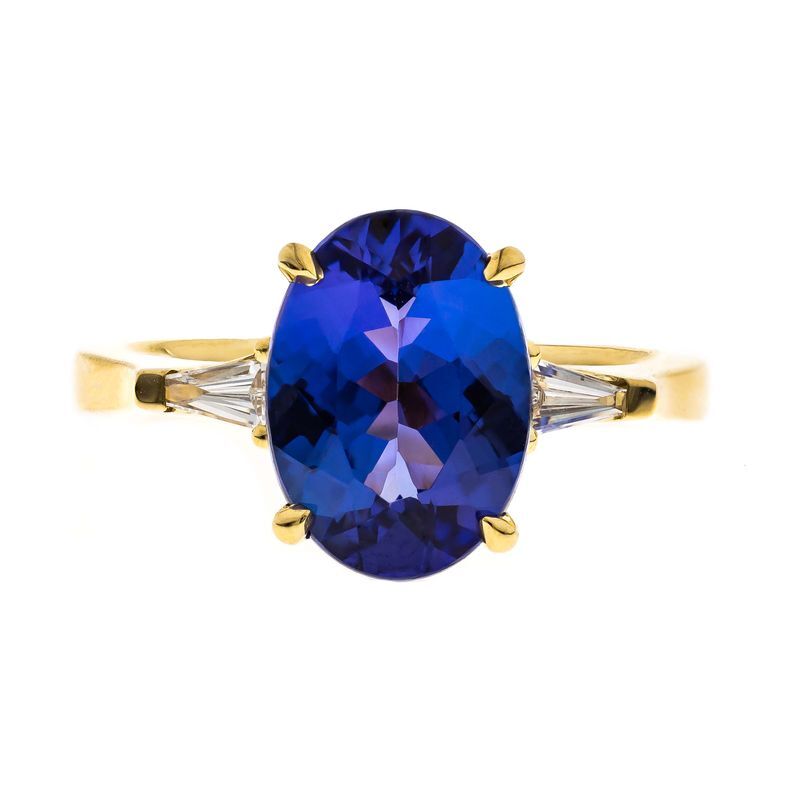18KY 4.38CT TANZANITE WITH .15CT DIAMOND RING | Breckenridge Jewelers
