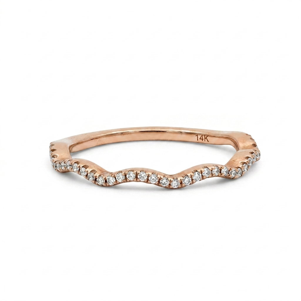 14k Rose Gold .10ct Diamond Wavy Band